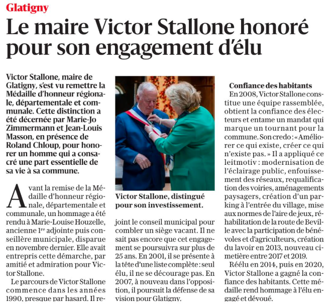 Glatigny - Le maire Victor Stallone honoré pour son engagement d’élu